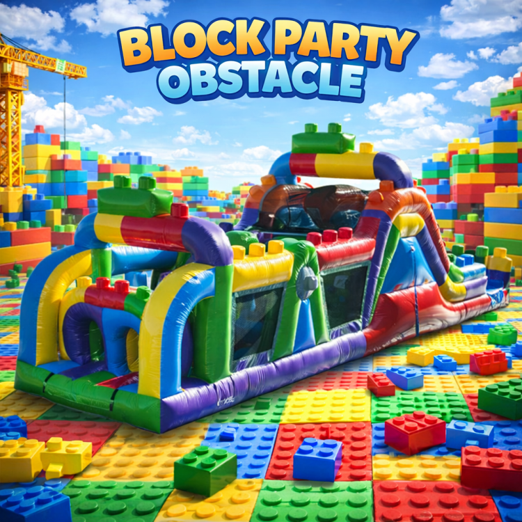 Turn up the fun and cool things down with our 40' Block Party Obstacle Course with Water Slide! This colorful inflatable combines fast-paced obstacle action with a refreshing water slide finish, making it the perfect choice for hot summer days. Designed for friendly competition and nonstop excitement, it’s a hit at backyard parties, school events, and summer celebrations of all kinds. 😎🎉