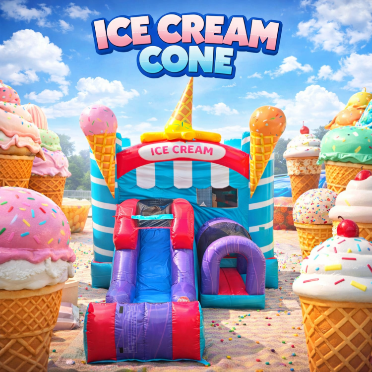 Cool off in the sweetest way possible with our Ice Cream Cone Bounce and Water Slide! This colorful, dessert-themed inflatable combines playful ice cream graphics with refreshing water slide fun—making it a perfect choice for hot summer days, birthday parties, school events, and backyard celebrations. It’s bright, fun, and guaranteed to be a crowd favorite! 😎🎉