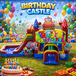 Make a splash on the big day with our Birthday Castle Double Lane Bounce & Water Slide! Featuring bright birthday colors and classic castle styling, this inflatable delivers refreshing fun and nonstop excitement. With two side-by-side water slide lanes, it’s the perfect centerpiece for summer birthdays, school events, and backyard celebrations. 😎🎉